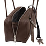 A small recycled leather bowler bag designed to be accessorized, with four charm loops and a clip ring. An interior zip pocket keeps things secure and in reach. Fits your phone, wallet, keys, and more.