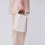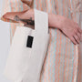 A mini bucket tote bag with a distinctive wide strap for structure and depth. Its minimalist and spacious design features one interior pocket and a keychain loop for quick access to essentials. Made with a heavy duty 15 Oz cotton duck canvas with an environmentally-friendly water repellent treatment. Made in NYC.