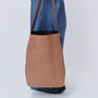 A medium-sized minimalist canvas bucket tote bag, designed for everyday use and travel. Laptop-friendly and made from durable cotton canvas.