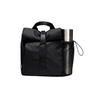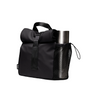 Design features a single main compartment to accommodate bento box style food storage boxes or medium tupperware. The outside features a zipper pocket and side bottle pocket with drawstring fastening. The bag is finished off with a secure closure with a plastic buckle and a webbing carry handle.