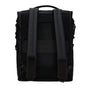 The Otaru Backpack doubles as a multifunctional tote — waterproof and perfect for city living. Unzip and unclip the broad top opening to access a spacious compartment with light grey lining. Inside, you’ll find a hanging mesh pocket, secure zip pocket, and padded 16" laptop pocket. A backside zip allows quick laptop access. Two large front pockets on the exterior keep keys, chargers, and small essentials close at hand.