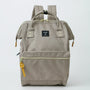 Padded 13" laptop sleeve, a hidden back pocket and travel handles. With an iconic and unique style, the Japanese Anello Cross Bottle Backpack is our most popular and best selling style backpack. The classic wide-opening "mouth" is framed with wire for sturdiness and extreme ease when packing.