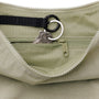 A casual, easygoing bag with room for more than the essentials. Wear it over the shoulder or crossbody for a comfortable, hands-free carry. Two interior pockets help keep things organized, with an internal logo key leash and metal carabiner for added function.