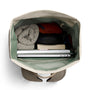 The adjustable capacity and familiar shape of a rolltop commuter backpack, enhanced with modern organization and access.