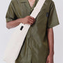 The large Crossbody Bucket is crafted from a structured 15 Oz heavy cotton canvas, finished with a drawcord closure for secure storage and expandable utility. Designed to comfortably fit up to a 16" laptop.