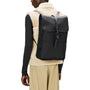 The Backpack is cut in Rains’ signature waterproof PU fabric, engineered for carrying strength, durability, and a smooth feel.