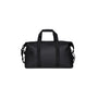 The Hilo Weekend Bag by Rains is a sleek, waterproof overnight bag with a spacious main compartment and side compression straps for secure packing. It features webbing carry handles with a comfort wrap and a detachable shoulder strap for versatile carry options.