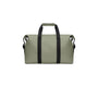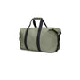 The Hilo Weekend Bag by Rains is a sleek, waterproof overnight bag with a spacious main compartment and side compression straps for secure packing. It features webbing carry handles with a comfort wrap and a detachable shoulder strap for versatile carry options.