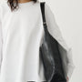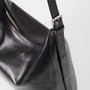 The Hilo is the everyday tote bag with a minimal look. The style is crafted from black glazed leather with an A-lined shape, top zip closure and an adjustable shoulder strap with silver-toned buckles. Details include textile lining and a small inner pocket with zip closure.