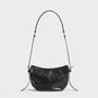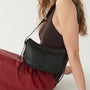 Minoh is the mini half-moon bag with a contemporary design. Crafted in dark brown leather with top-zip closure, an adjustable shoulder strap and decorative metal trimmings. Details include decorative stitching and a small interior pocket.